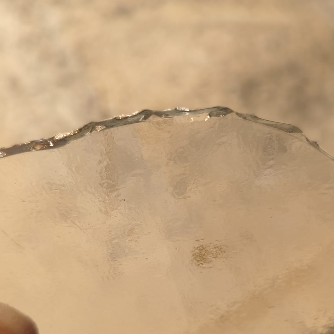Kiedy szlifierka wesoło wiruje, możemy przystąpić do szlifowania. Trzeba trochę uważać, bo to jest właśnie ten moment, kiedy można się skaleczyć, a to dlatego, że szkło dociskamy delikatnie od góry, ale także od krawędzi, w stronę bitu. Jeśli krawędź, za którą dociskamy szkło, nie była jeszcze szlifowana, może być ostra jak nóż i rozciąć nasz opuszek.